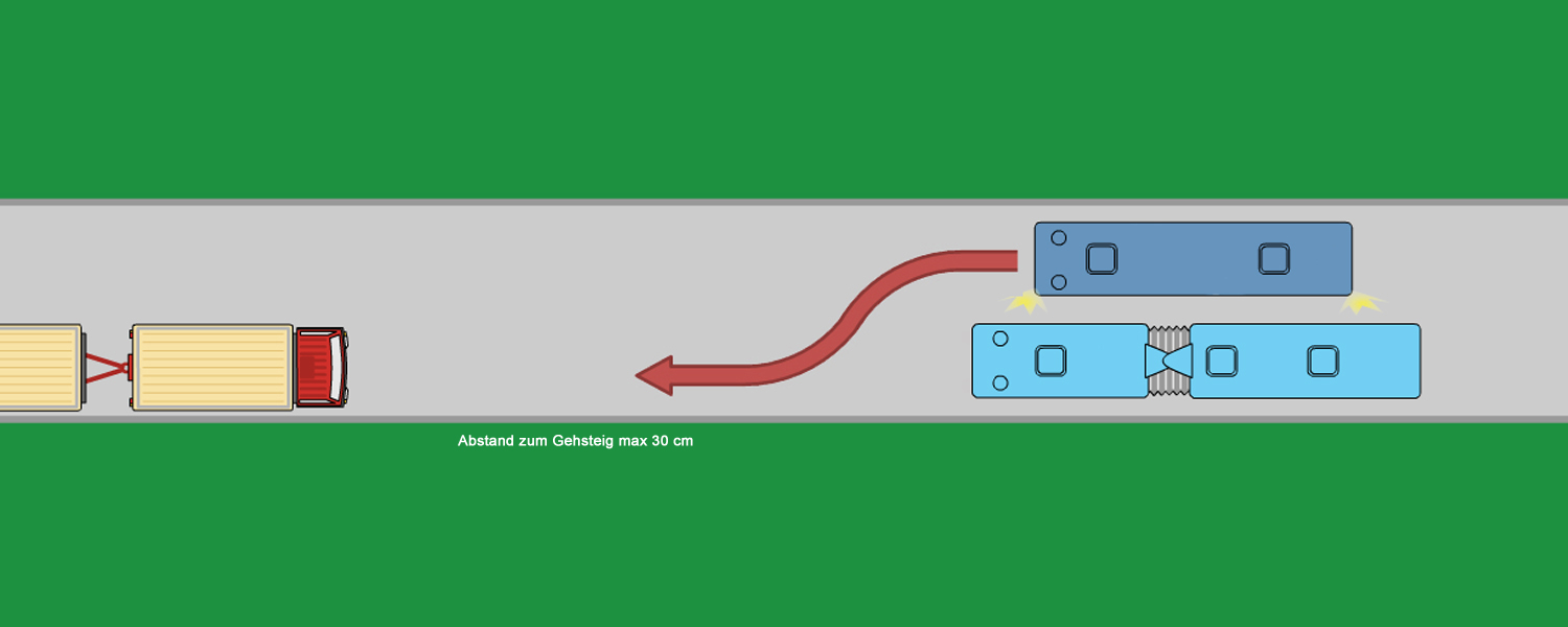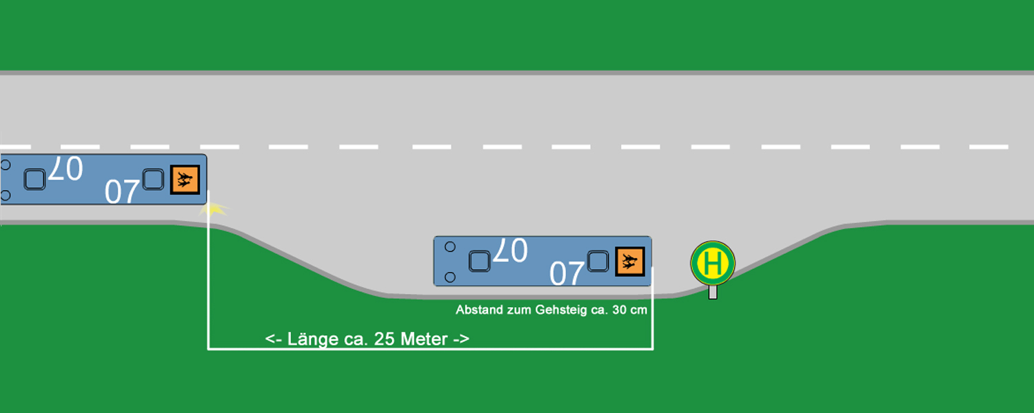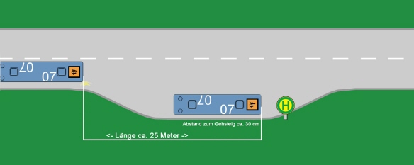 Das Fahrzeug ist innerhalb von etwa 25 m nach Verlassen der normalen Fahrspur zum Heranfahren an die „Haltestelle“ annähernd parallel zum Bordstein anzuhalten.